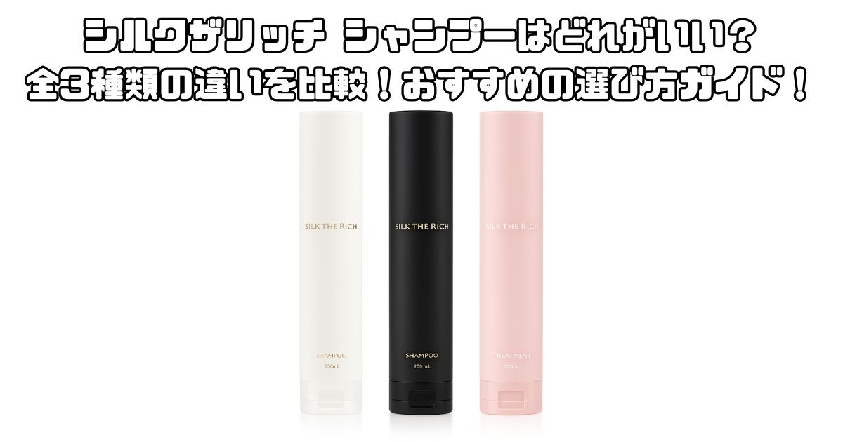 シルクザリッチのシャンプーは「白・黒・ピンク」の3種類があります。ここでは各ラインの特徴や成分、香り、仕上がりを比較しながら、どのシャンプーが自分に合っているのかをわかりやすく解説します。