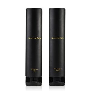 シルクザリッチ黒ラインは、頭皮のベタつきや匂い、ボリュームダウンが気になる方に特に人気のスカルプケア特化タイプ。炭を配合したクレンジング力と、7種類の頭皮成分+エクソソームで地肌から整える処方が採用されています。